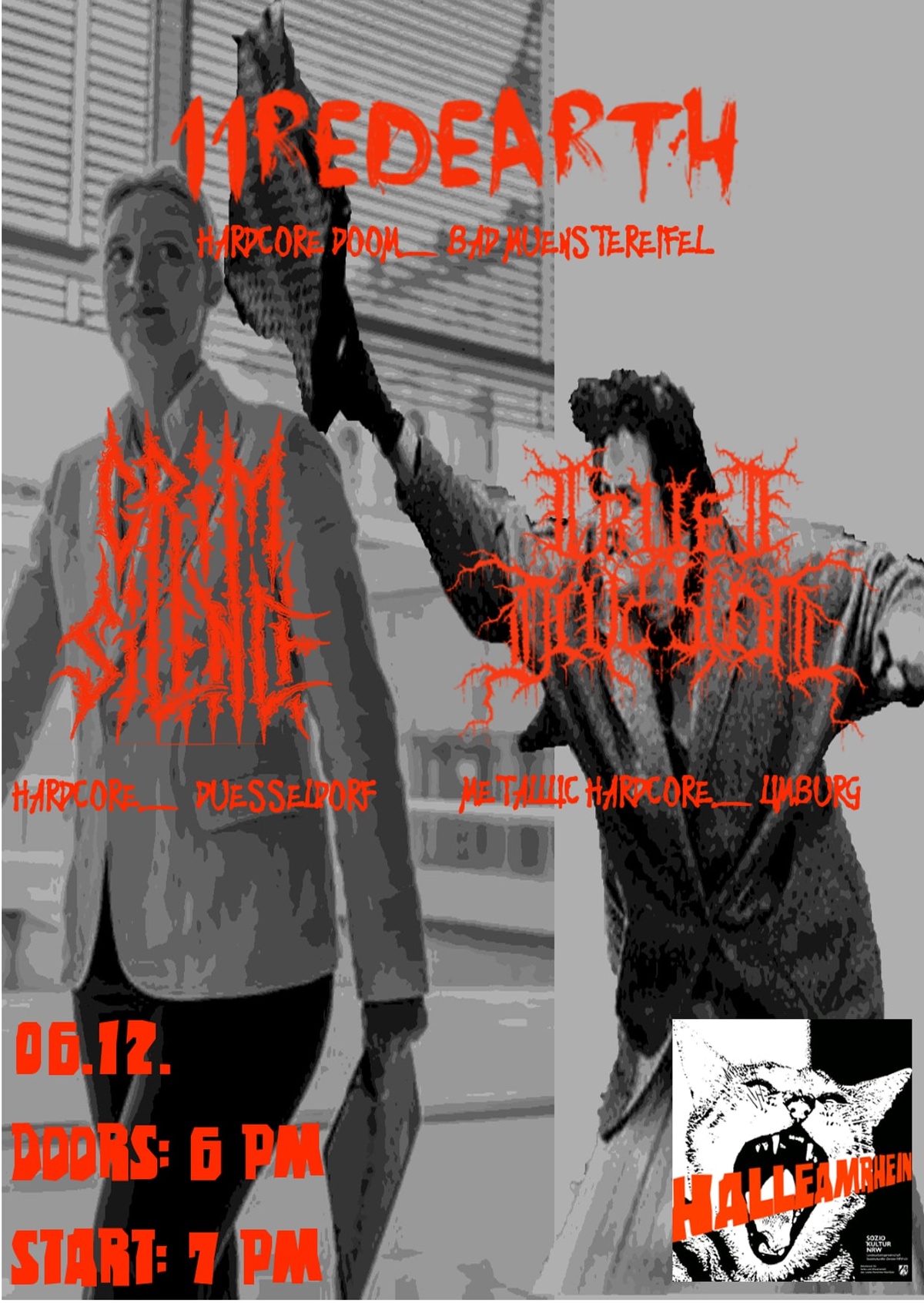 Konzert mit Cruel Division (metallic hc), grim silence (female fronted hc), 11redearth (Doom Sludge HC)